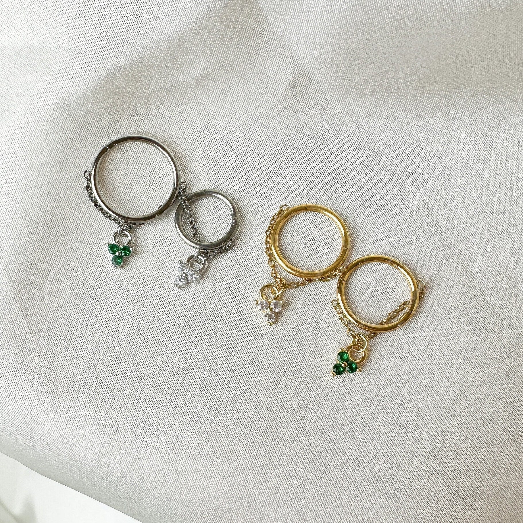 16g 18g 6mm 8 mm 10 mm 12mm Emerald Clover F136 Titanium Chain Charm Conch Hoop, gold hoop, silver hoop, 3 dots charm, helix charm hoop
