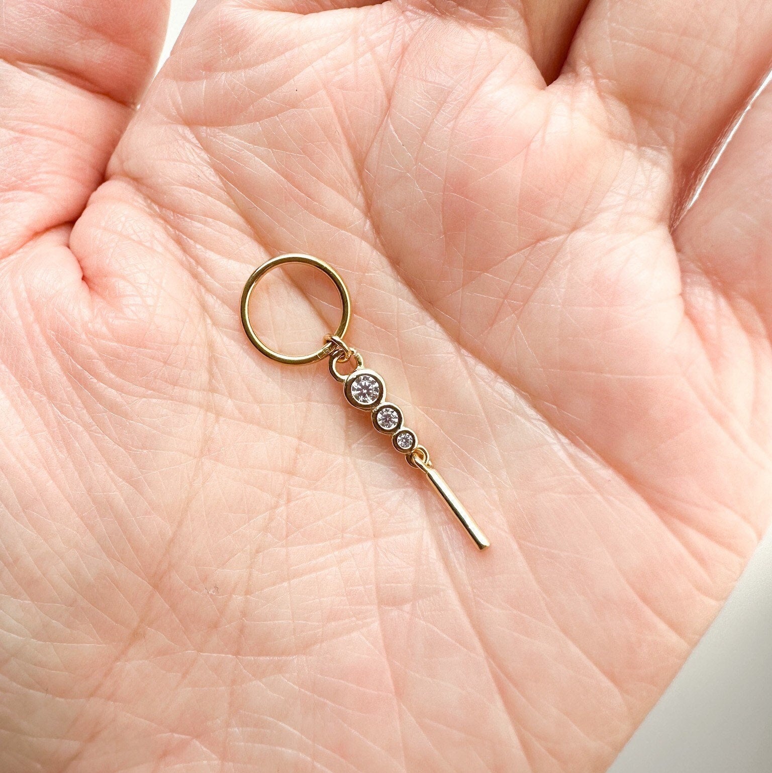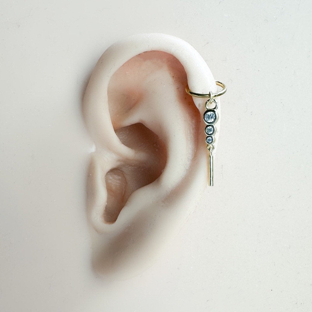 16G 18G Triple CZ Bar Dangle Stainless Steel Cartilage Hoop Earrings, rook huggie, hoop huggies, helix hoops, small hoops