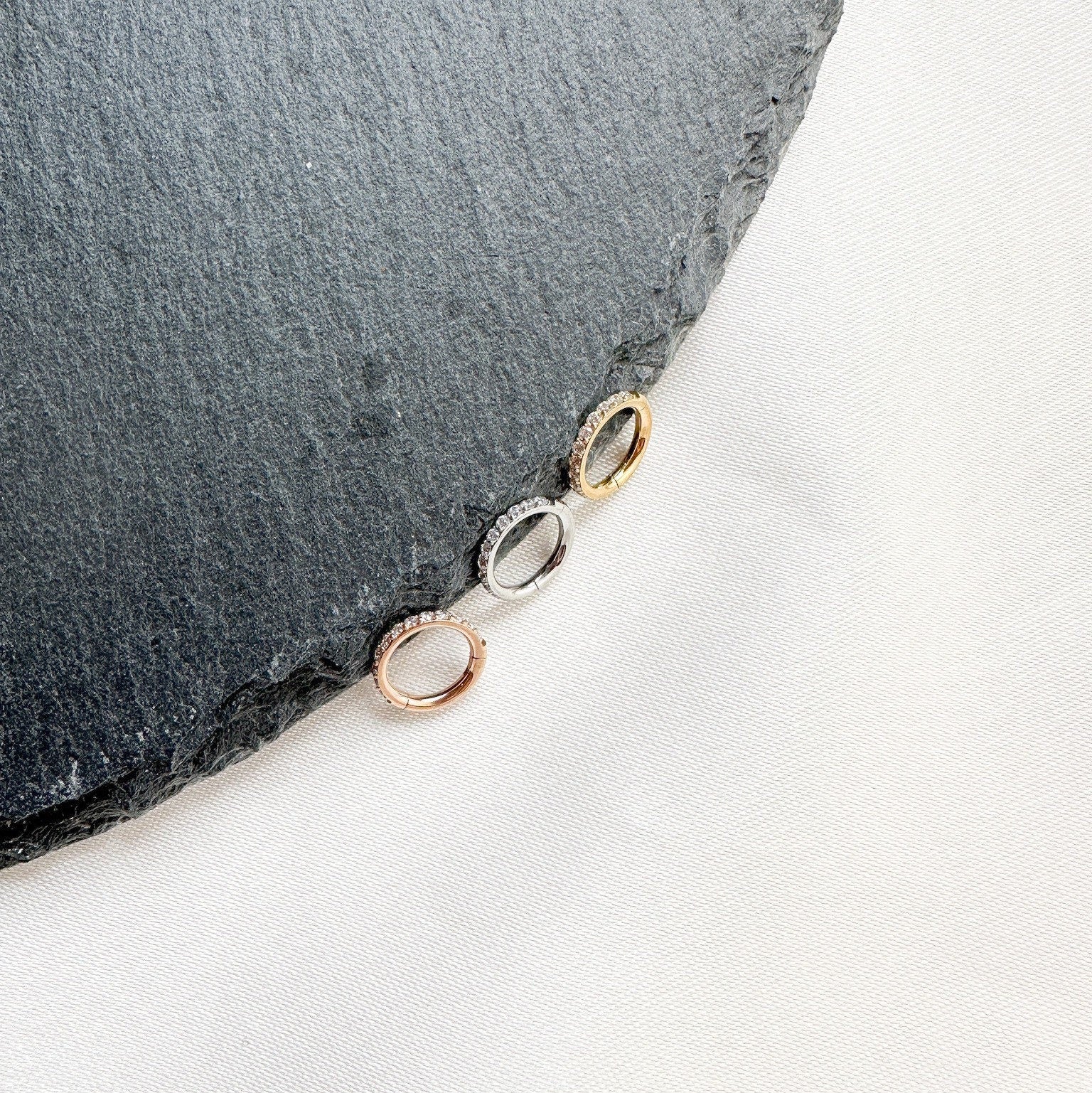 16g 6mm Crystal Paved Rose Gold Clicker Hoop for Cartilage, Helix, Rook, Lobe, Tragus, Hypoallergenic 316L Surgical Steel, Non-Tarnish