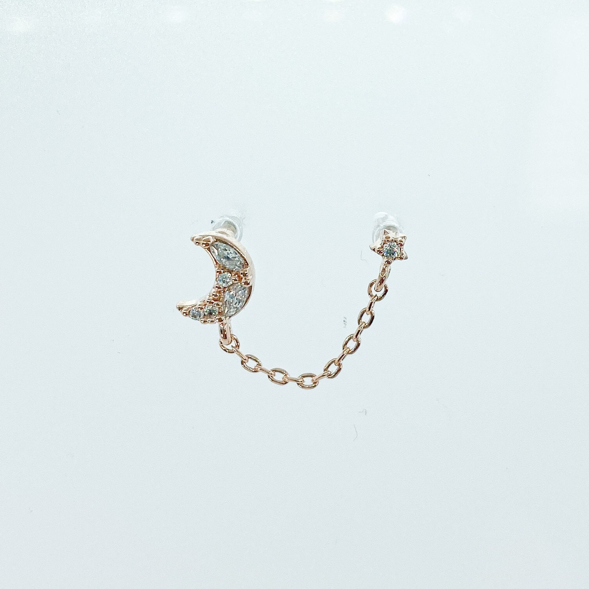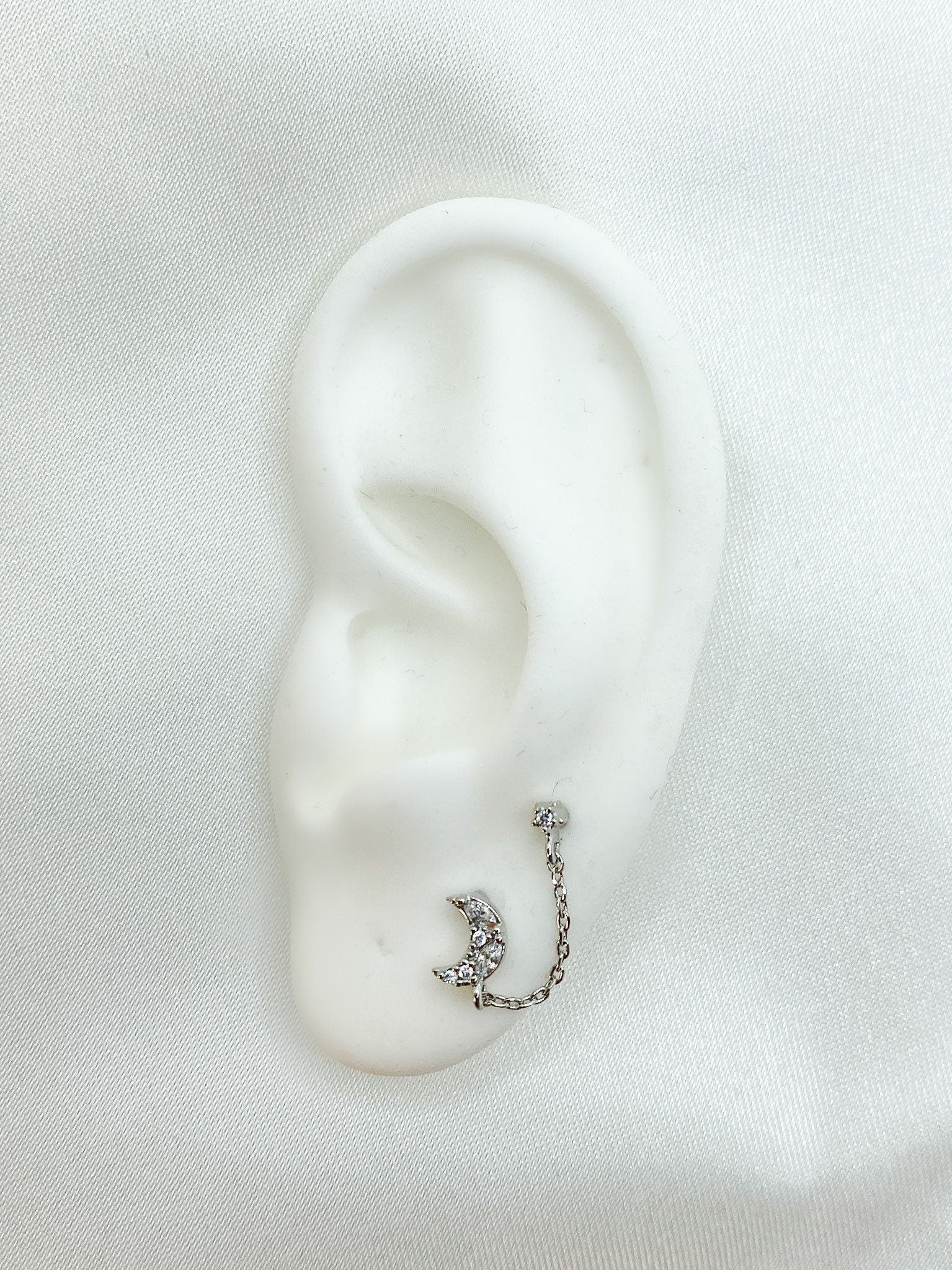 Dainty cz Crescent moon and star double piercing earrings, earrings, 16 gauge piercings, star earrings, two lobe piercing