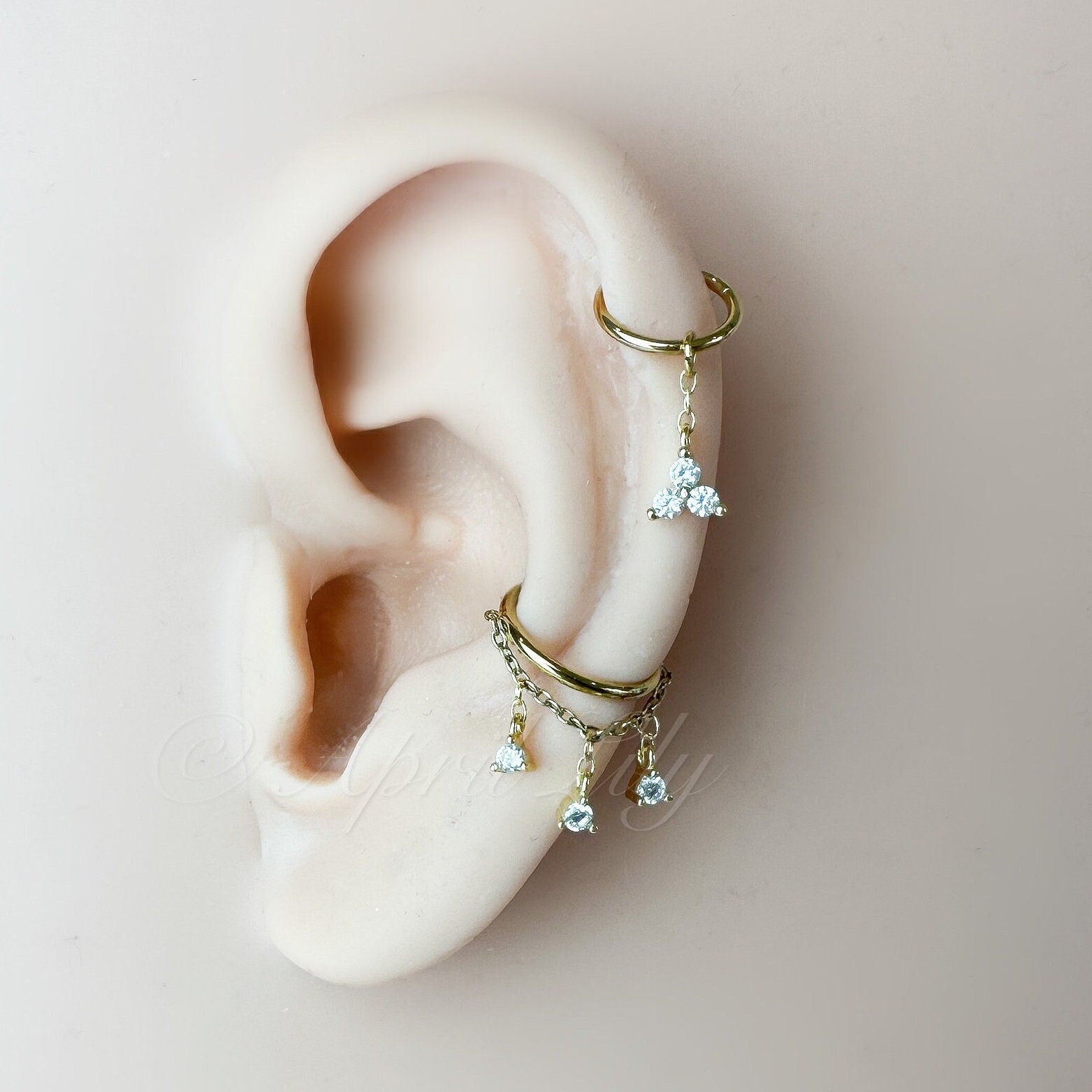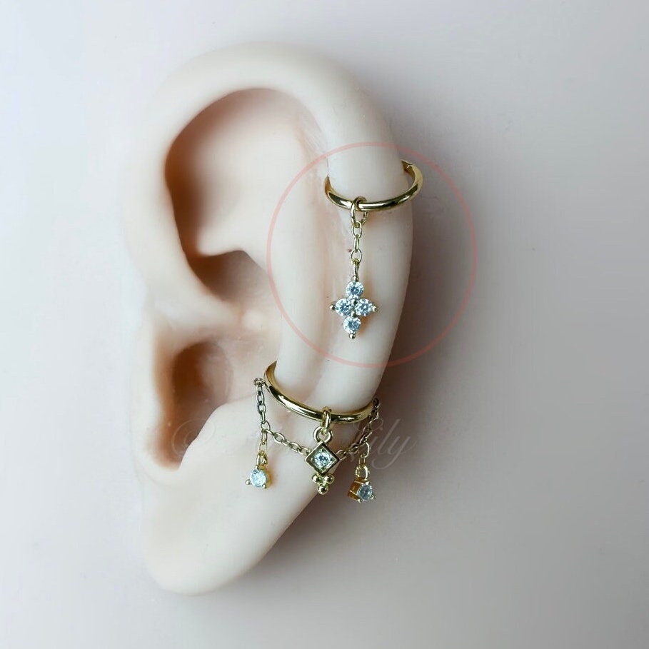 Dainty Hera CZ Dangle Helix Hoop Charm, sterling silver, 316L Surgical Steel piercing, hoop huggies, cartilage piercing, helix piercing