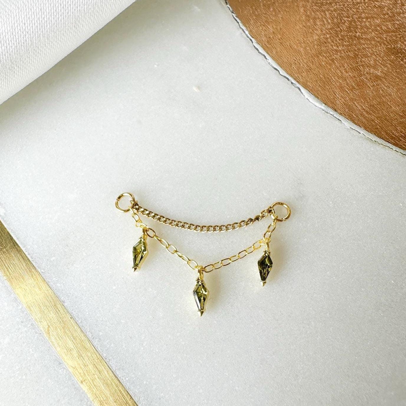 Dainty Industrial Barbell Kite CZ Double Chain (only) for Piercing, Gold Sterling Helix Chain Piercing, Chain Earring, 14g, 16g, 18g