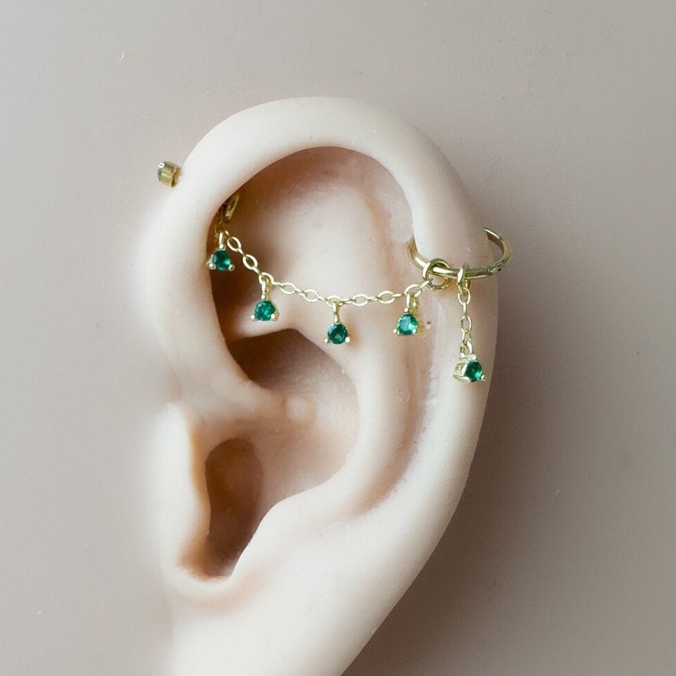 Dainty Industrial Barbell Sapphire CZ Chain (only) for Piercing,Chain For Earring Piercing, Chain Earring,Conch Chain Piercing 14g, 16g, 18g