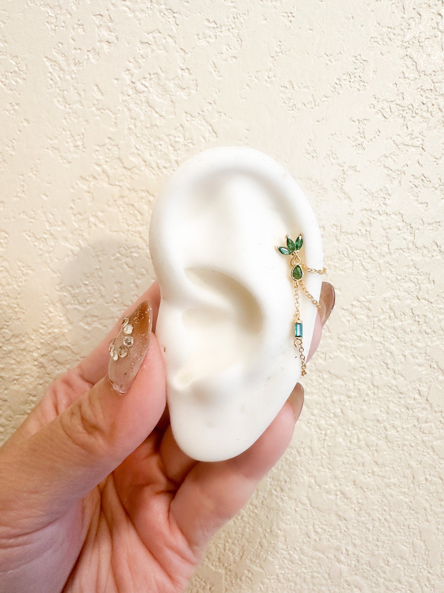 Dainty Triple Chain Helix Piercing, cartilage piercing 20g, hoop huggies, body piercing, chain earrings, helix hoops, minimalist