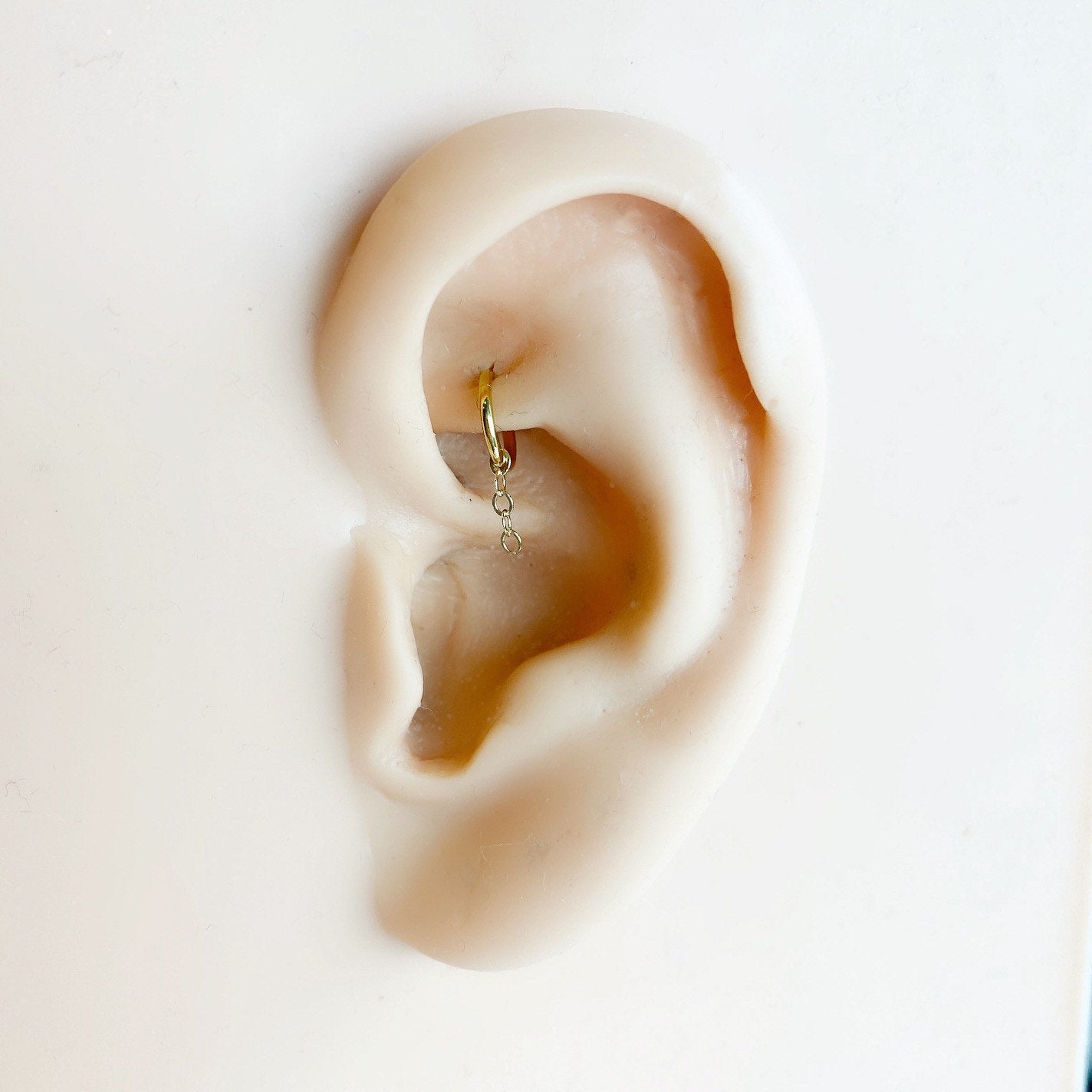 Designer Collection 18g stainless steel hoop, 18k gold filled chain, rook huggie, hoop huggies, cartilage piercing, cartilage earrings