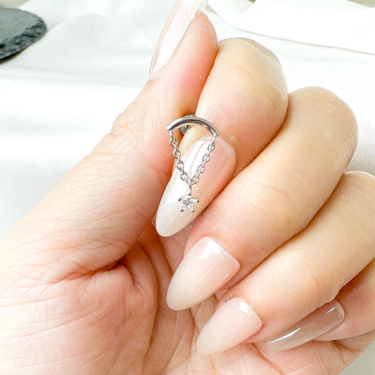 Hidden Helix Star Piercing 16g F136 Implant Grade Titanium, flat piercing, helix labret, hidden rook piercing