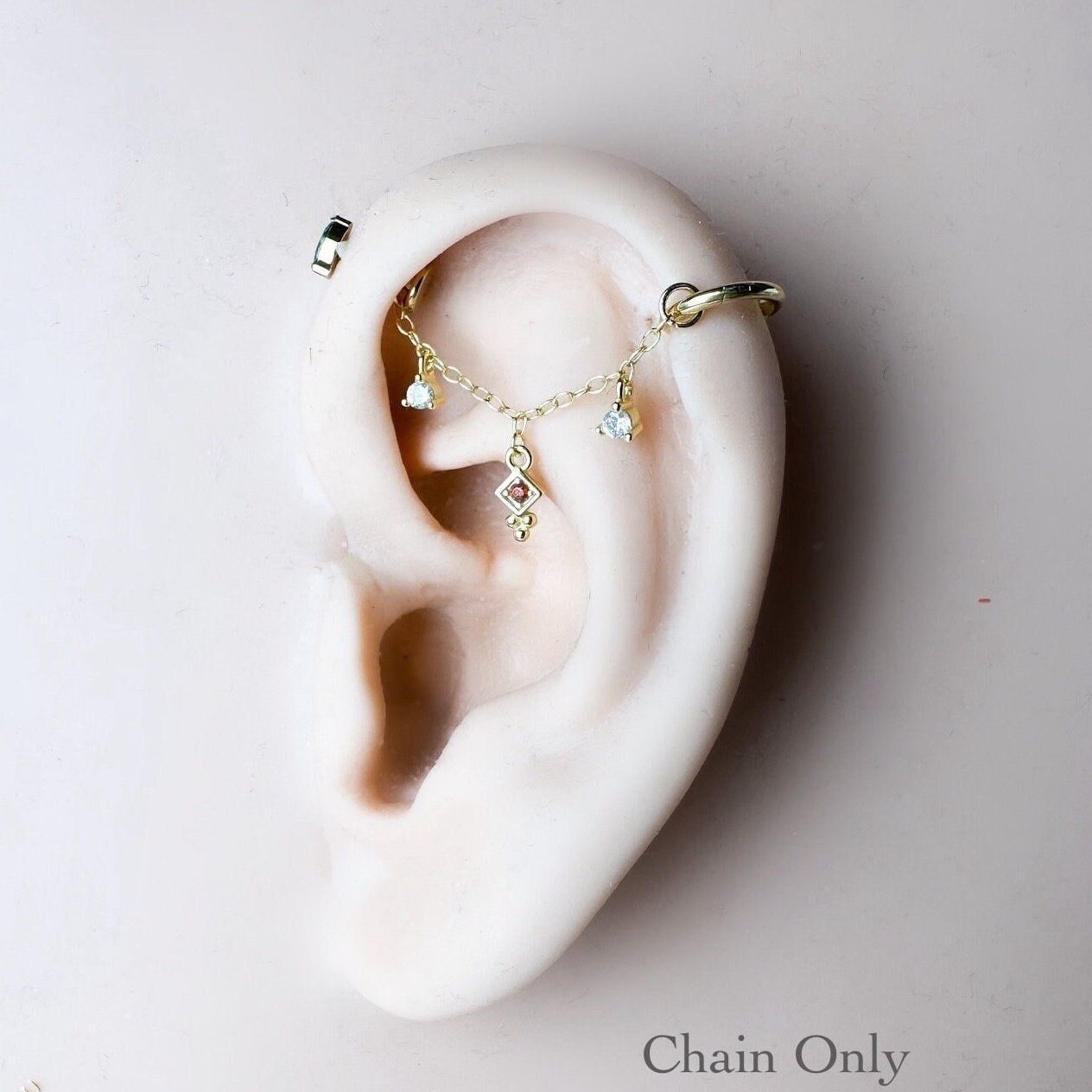 Listing is for chain only, other piercings not included. Chain can be attached to any current hoops or barbells, studs up to 14g.