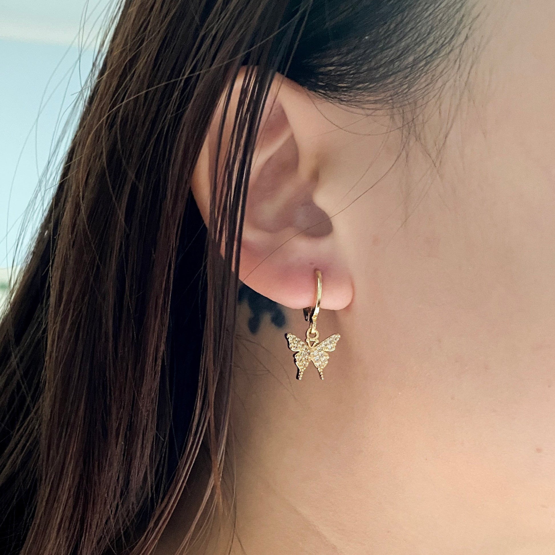 SET of 18kt gold plate cz Butterfly Necklace and earrings set, butterfly charms, gifts, dainty butterfly necklace, Birthday gifts