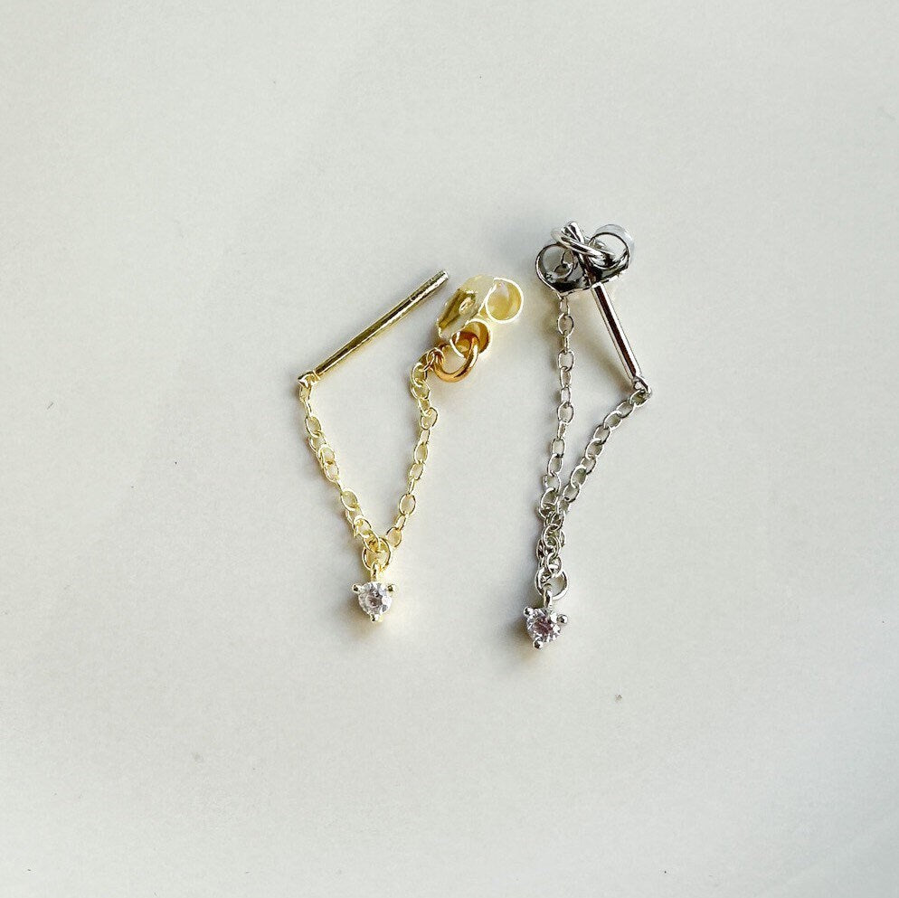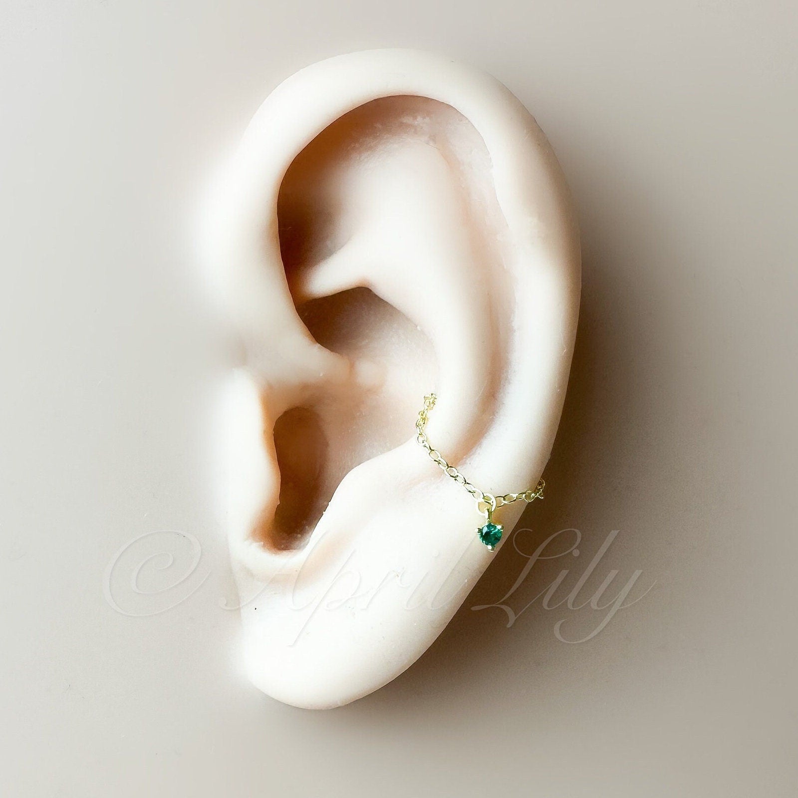 Simple Dainty Drop Emerald Crystal 18kt Gold Sterling Silver Chain conch piercing, cartilage piercing, conch hoop, chain earrings